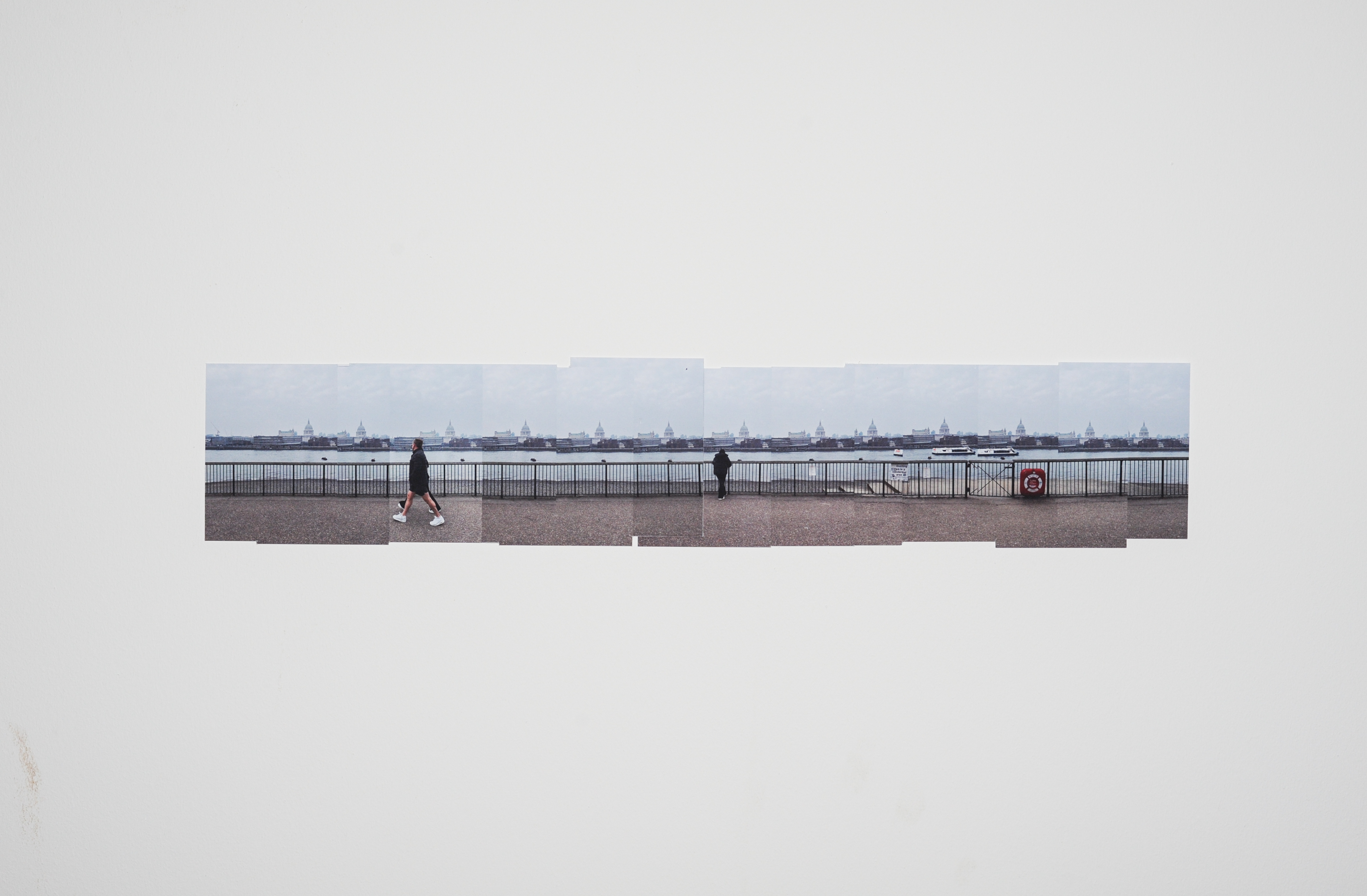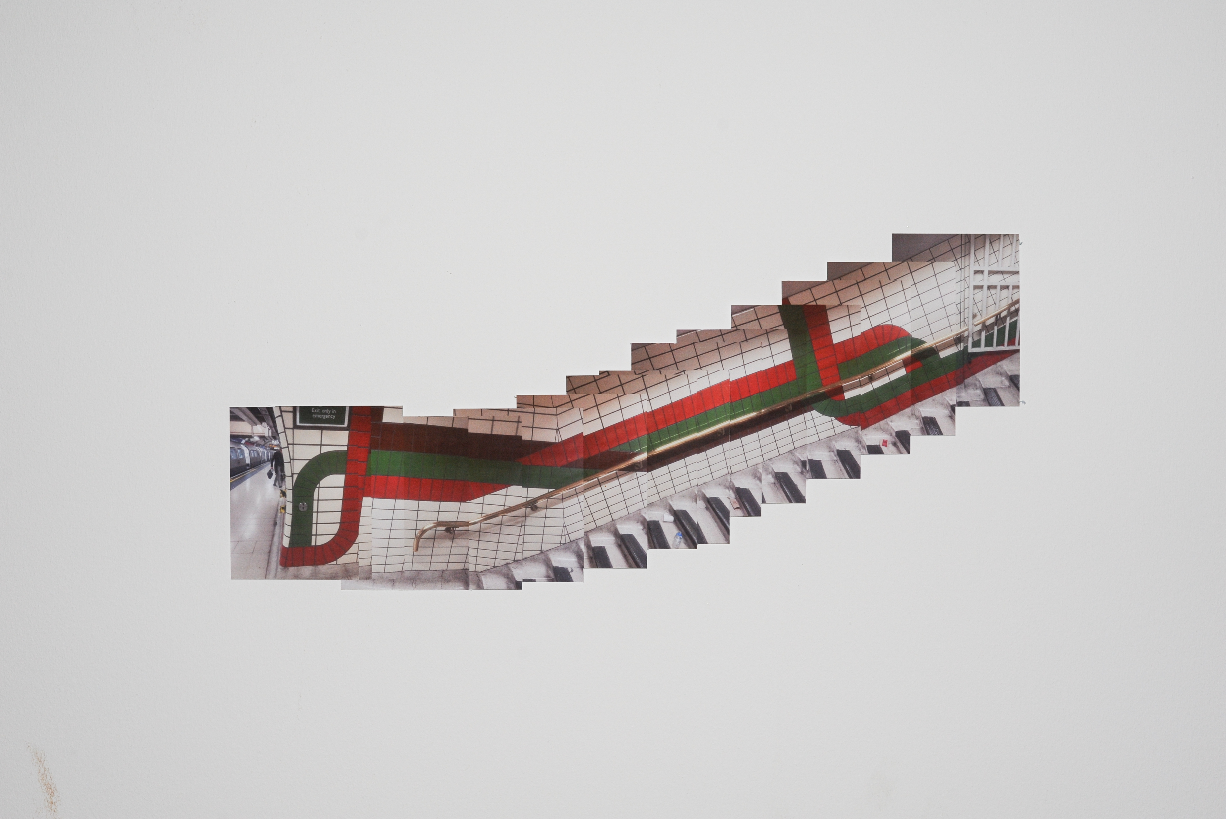 The silhouette of each composition mirrors the structure of the handrail itself, extending beyond a single photographic frame. By aligning with the body's movement through space, these works freeze a temporal sequence of time within a static form. The relative distance between the viewer and the handrail becomes embedded in the composition, emphasising the tension between motion and stillness.